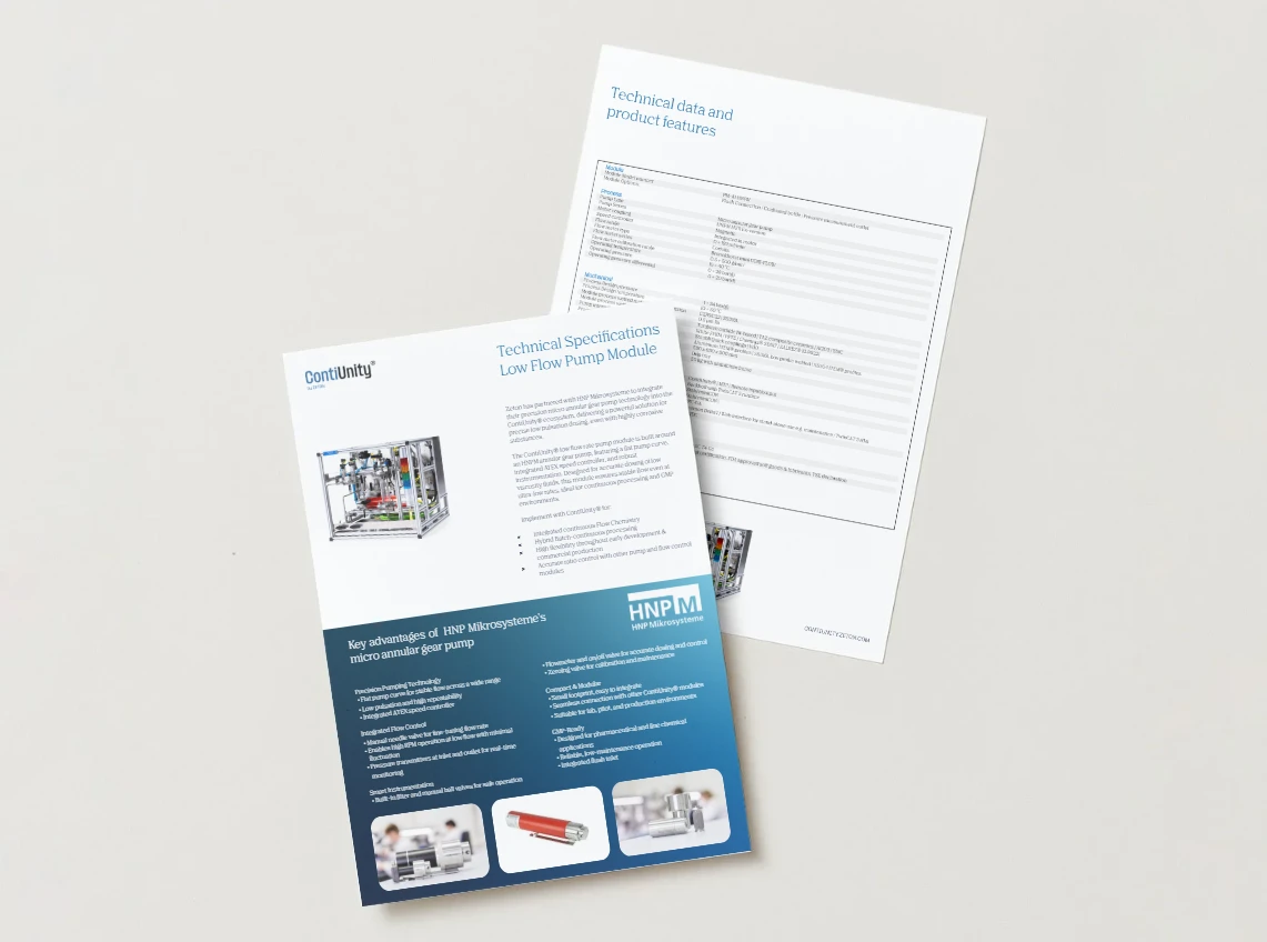 Zeton has partnered with HNP Mikrosysteme to integrate their precision micro annular gear pump technology into the ContiUnity® ecosystem, delivering a powerful solution forprecise low pulsation dosing, even with highly corrosivesubstances.The ContiUnity® low flow rate pump module is built around an HNPM annular gear pump, featuring a flat pump curve,integrated ATEX speed controller, and robustinstrumentation. Designed for accurate dosing of lowviscosity fluids, this module ensures stable flow even at ultra-low rates, ideal for continuous processing and GMPenvironments.Implement with ContiUnity® for:Integrated continuous Flow ChemistryHybrid Batch-continuous processingHigh flexibility throughout early development &commercial productionAccurate ratio control with other pump and flow controlmodules